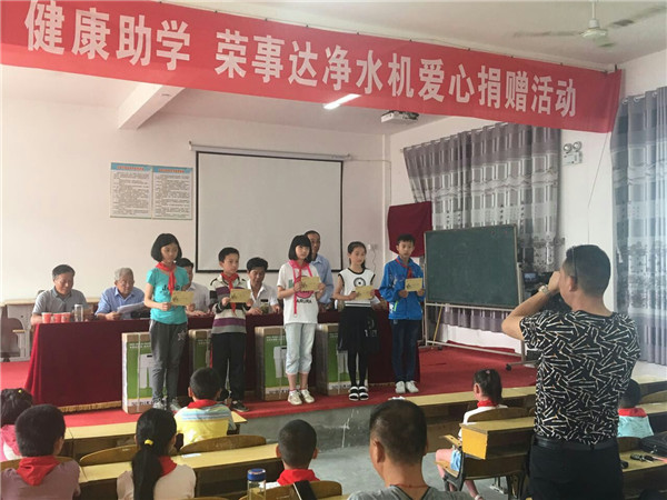 6月2日,“精準扶貧 健康助學 榮事達凈水機愛心捐贈活動”于安徽望江縣順利開展。榮事達水工業(yè)公司聯(lián)合當?shù)亟?jīng)銷商為望江縣毛安中心學校、新壩中心學校、武昌小學等多所學校多所學校捐贈凈水設備,并向20名特困學生捐贈了助學款,以改善學生們的飲水及生活條件。