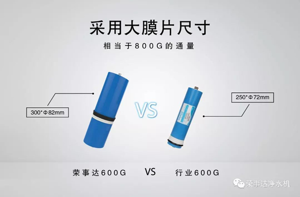 對(duì)于凈水機(jī)配件的選擇,榮事達(dá)一直是認(rèn)真的。此次600G智能反滲透凈水機(jī)在核心部件RO反滲透膜的挑選上,就直接摒棄市場(chǎng)上主流的常規(guī)RO膜濾芯,采用專(zhuān)業(yè)定制化濾芯。 300Xφ82毫米獨(dú)特大膜片搭配專(zhuān)業(yè)卷膜技術(shù),性能更為出眾,600G濾芯相當(dāng)于800G濾芯通量,制水速度快,同時(shí)可充分凈化余氯、細(xì)菌、重金屬等有害物,出水可達(dá)直飲標(biāo)準(zhǔn)。Simple.至 簡(jiǎn)