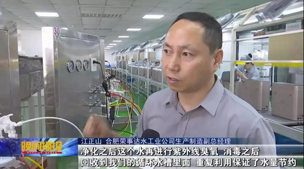 511日—517日為第二十八屆全國(guó)城市節(jié)約用水宣傳周,為引導(dǎo)廣大市民養(yǎng)成良好的節(jié)水習(xí)慣,同時(shí)推動(dòng)節(jié)水技術(shù)在企事業(yè)單位發(fā)展中的普及,合肥新聞?lì)l道開(kāi)展“全國(guó)城市節(jié)約用水宣傳周”系列報(bào)道。516日晚21時(shí)30分,合肥新聞?lì)l道《晚間播報(bào)》節(jié)目播出新聞《循環(huán)利用“節(jié)水器”  助力綠色環(huán)保》,就校園直飲水節(jié)水建設(shè)和企業(yè)綠色生產(chǎn)做了專(zhuān)題報(bào)道,并走進(jìn)本土知名企業(yè)合肥榮事達(dá)水工業(yè)公司,見(jiàn)證了領(lǐng)先的凈水及節(jié)水技術(shù)。