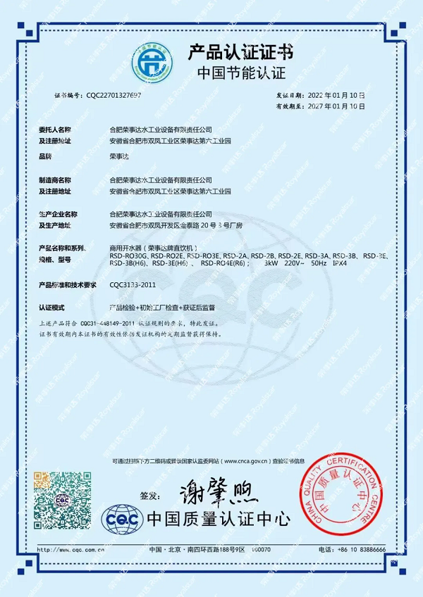 設備采用節能熱交換技術,熱損低,更節能;保溫結構設計,保溫效果好。六個水龍頭設計,有效應對飲水量大與飲水集中的問題,確保供水順暢。五級過濾,RO反滲透技術,有效濾除水中的泥沙、鐵銹、重金屬、余氯等有害物質,確保水質干凈;智能防護功能,斷電保護、電子控溫、七重保護,可充分保障師生使用安全。
