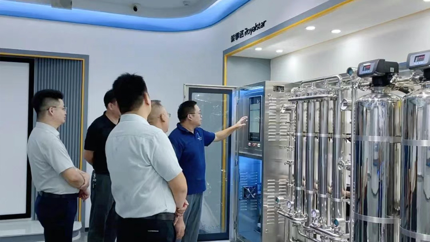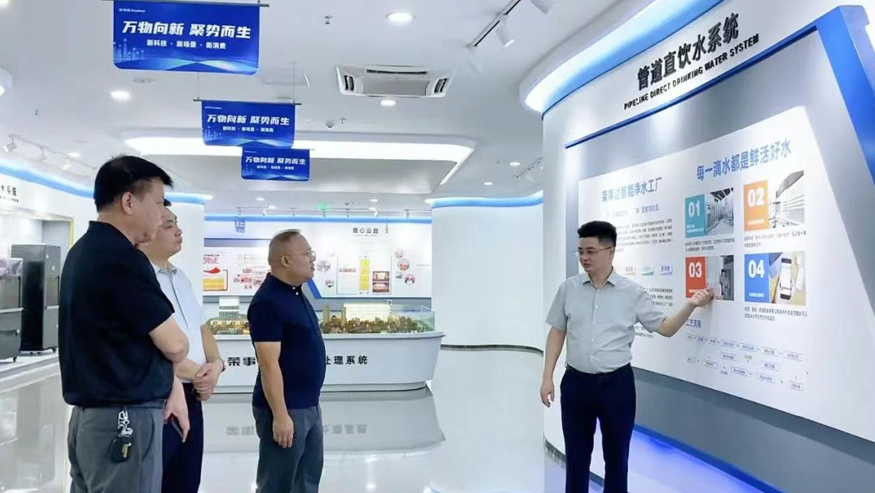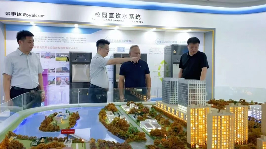 白冰董事長一行認(rèn)真聽取講解,還就榮事達(dá)管道直飲水項目的設(shè)備性能、技術(shù)原理等細(xì)節(jié)與陪同人員深入交流。榮事達(dá)管道直飲水項目是針對社區(qū)、學(xué)校、醫(yī)院、企事業(yè)單位及工廠等場景,提供定制化飲水模式,涵蓋社區(qū)智慧水站、校園智慧凈水屋、高端直飲水設(shè)備及變頻供回水系統(tǒng),旨在為民眾打造便捷、高端、健康的飲水服務(wù)。