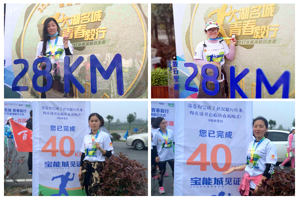 在40KM黃麓鎮終點處,隊員張曉珊、張佳佳攜手為榮事達拔得頭籌,在接受記者采訪時說道:“環巢湖毅行不僅磨練了我們意志,同時也傳遞了綠色健康的生活方式,希望每一位毅行者能將這些理念融入生活,保持健康身心!”