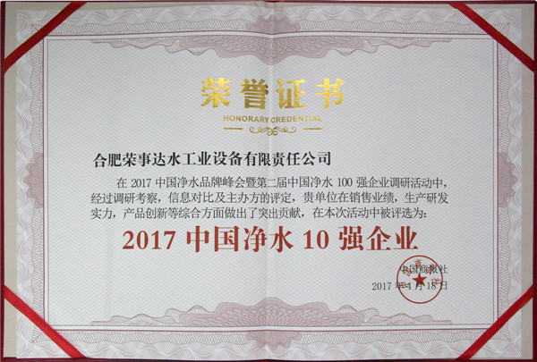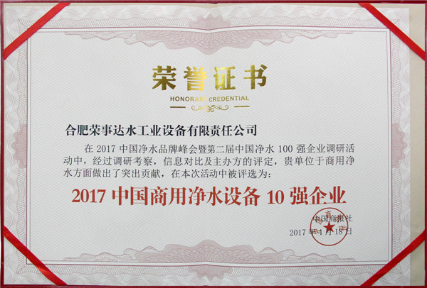 •        4月18日,2017中國(guó)凈水品牌峰會(huì)暨第二屆中國(guó)凈水100強(qiáng)企業(yè)頒獎(jiǎng)盛典在北京維景國(guó)際大酒店盛大舉行。榮事達(dá)憑借強(qiáng)勁實(shí)力和消費(fèi)者的信賴斬獲“2017中國(guó)凈水10強(qiáng)企業(yè)”、“2017中國(guó)商用凈水設(shè)備10強(qiáng)企業(yè)”、“消費(fèi)者滿意品牌”多項(xiàng)大獎(jiǎng)。