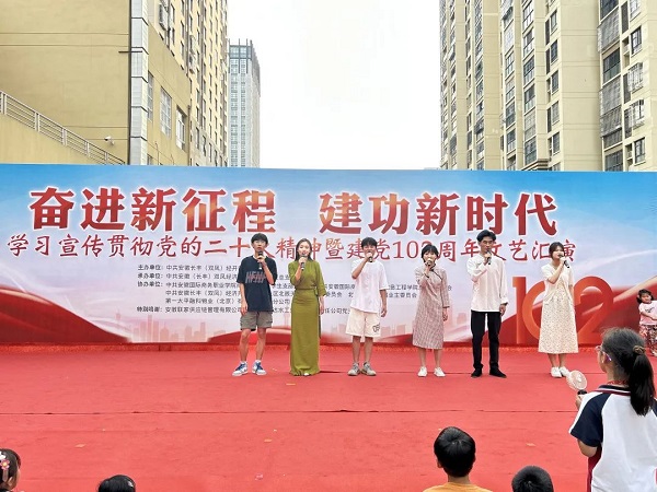 當日正值中共安徽長豐(雙鳳)經(jīng)開區(qū)工作委員會、中共安徽(長豐)雙鳳經(jīng)濟開發(fā)區(qū)鳳巢社區(qū)總支部委員會舉辦學習宣傳貫徹黨的二十大精神暨建黨102周年文藝匯演,榮事達水工業(yè)公司黨支部受邀參加了此次活動。