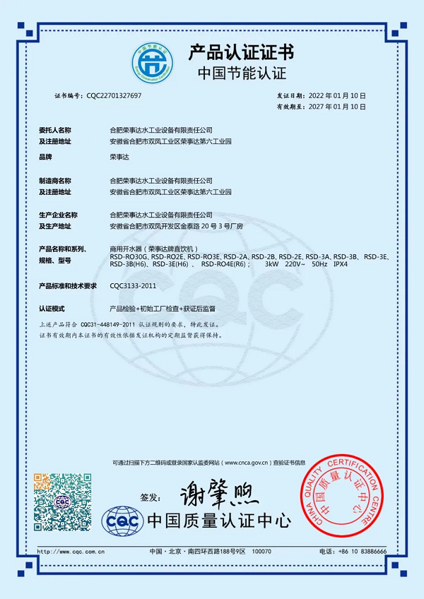 榮事達(dá)RSD-RO4E節(jié)能直飲機(jī)是中國節(jié)能認(rèn)證產(chǎn)品,產(chǎn)品采用節(jié)能熱交換技術(shù),在管式交換器內(nèi),過濾后的自來水吸收開水釋放的熱能升溫85℃左右,從而充分節(jié)省了降水燒開所需的電能和時(shí)間,有效改善了傳統(tǒng)飲水機(jī)的費(fèi)時(shí)、費(fèi)電的弱點(diǎn)。設(shè)備采用二開水二溫水設(shè)計(jì),既滿足了員工泡茶的需求,也提供了即飲的溫水選項(xiàng),極大地方便了員工的日常飲水。此外,設(shè)備采用先進(jìn)的RO反滲透技術(shù),有效濾除水中的泥沙、鐵銹、重金屬等雜質(zhì),出水可達(dá)直飲標(biāo)準(zhǔn)。