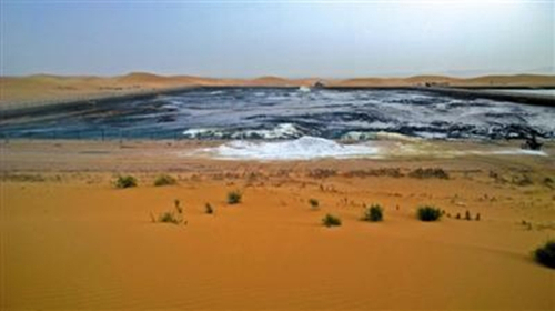 騰格里沙漠遭工業污染 管道插沙中散發著惡臭